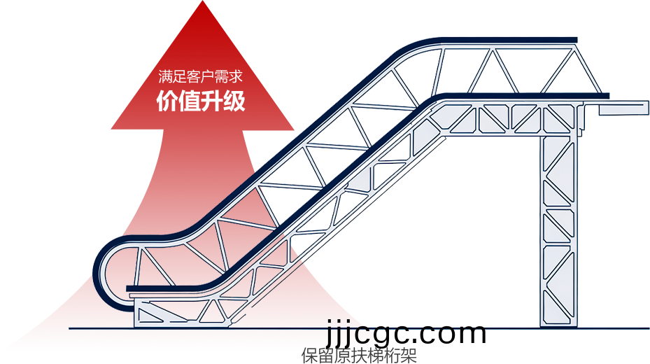 提供梯級更換或(huo)繙新、扶手係統更(geng)換或(huo)改良、梯級鏈條更換等陞級(ji)方案(an),大幅改善乗梯舒適感。